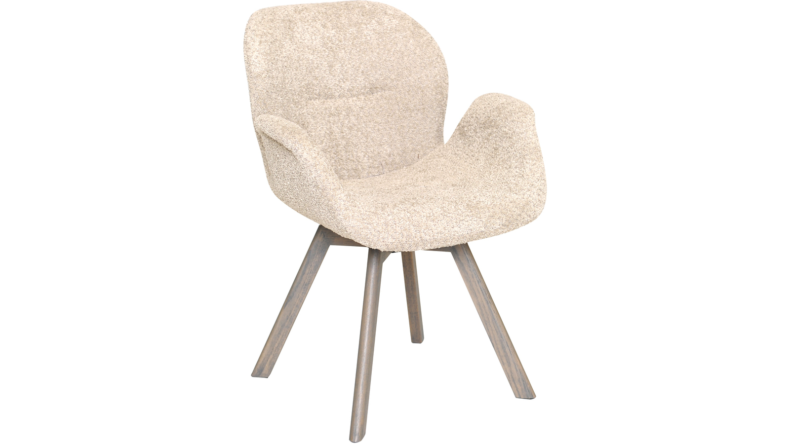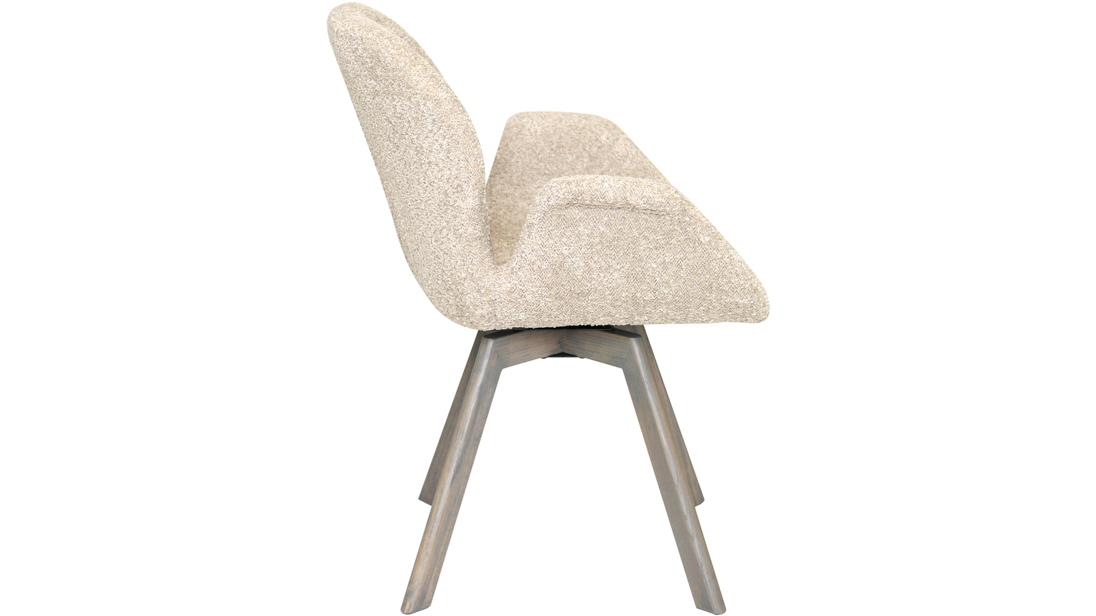 Mycket bekväm snurrstol i modern beige boucléklädsel med gråbruna träben.