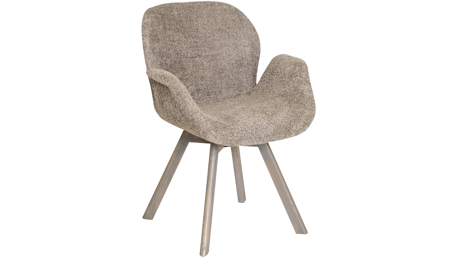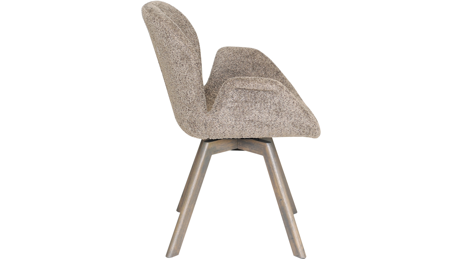 Mycket bekväm snurrstol i modern brun boucléklädsel med gråbruna träben.