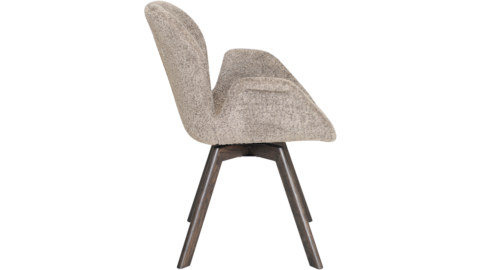 Mycket bekväm snurrstol i modern brun boucléklädsel med mörkbruna träben.