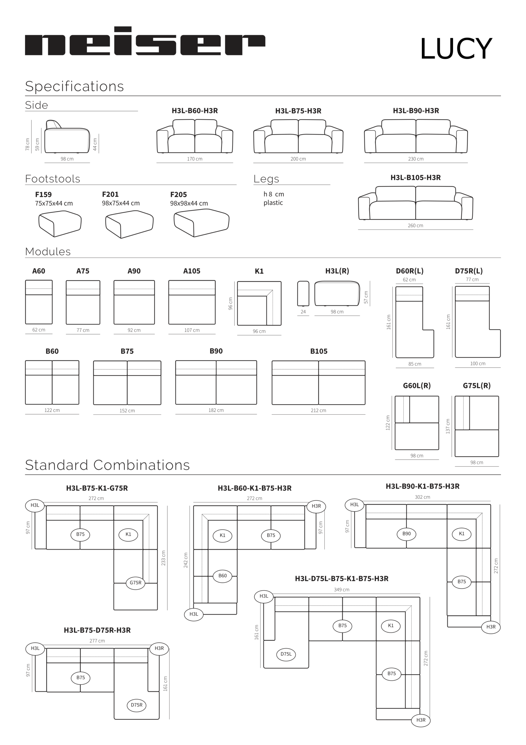 En mycket elegant och modern soffa för den kräsne! Lucy kännetecknas av sitt noggranna detaljarbete och fina komfort. Soffan har kallskum i både sits och rygg (40kg/m³ & 28kg/m³), något som bidrar till en bra livslängd. På denna modell är både rygg och sits fasta vilket ger en något stabilare känsla än motsvarande soffa med lösa dynor. Dessutom har soffan ett lager med dunstoppning för maximal komfort. På bilden syns den som 3,5-sits, men den finns även i tre kortare utföranden samt även med divan, öppet avslut eller som traditionell hörnsoffa. Klädseln är såklart valbar och här finns det riktigt många trendiga tyger att välja bland.